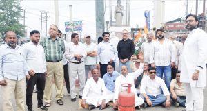 गैस सिलेंडर सड़क पर रख कांग्रेस ने किया धरना प्रदर्शन, फूंका सरकार का पुतला